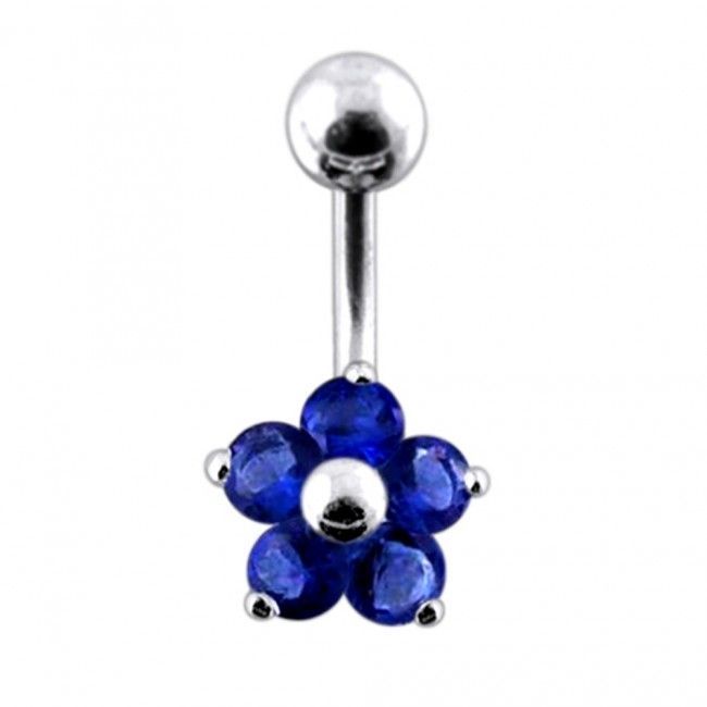 Piercingový šperk určený pro piercing pupíku. S ozdobou kytičky ze stříbra.