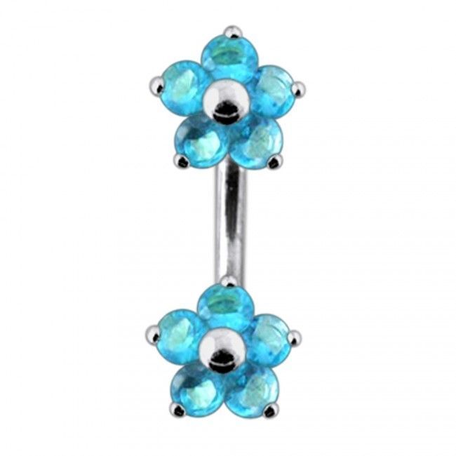 Stříbrný piercing do pupíku - kytičky (čirá)
