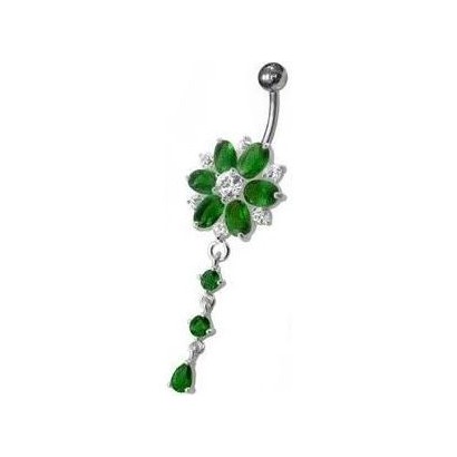 Piercingový šperk určený pro piercing pupíku. Piercing je zdobený kytičkou.