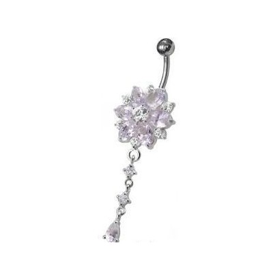 Stříbrný piercing do pupíku - kytička (čirá)