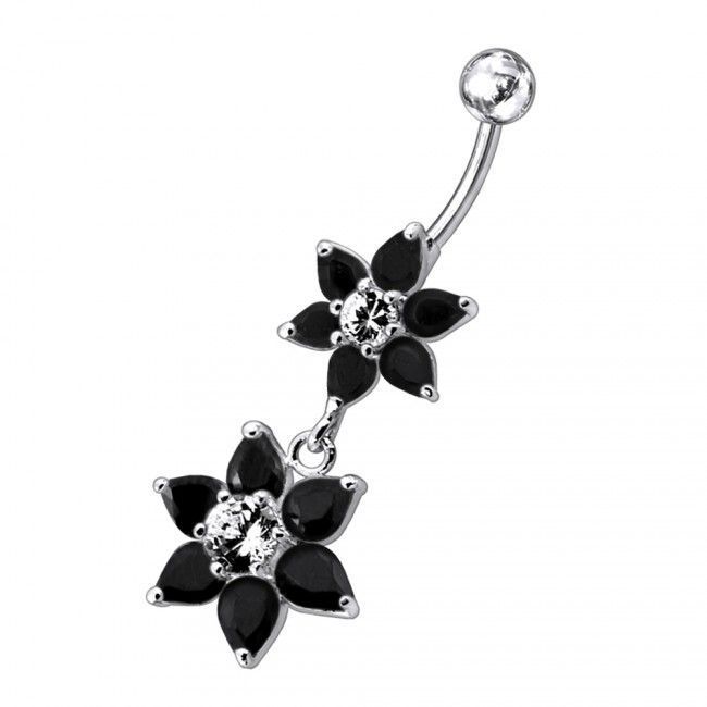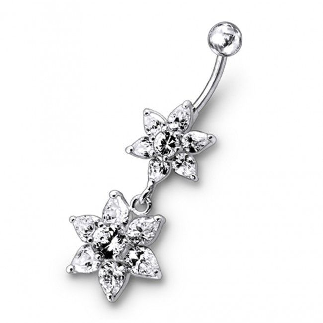 Stříbrný piercing do pupíku - kytičky (čirá)