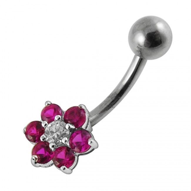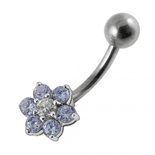 Piercingový šperk určený pro piercing pupíku. Piercing je zdobený kytičkou osázenou zirkony.