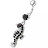 Piercingový šperk určený pro piercing pupíku. Piercing s mořským koníkem zdobeným zirkony.
