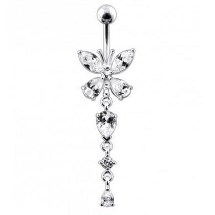 Stříbrný piercing do pupíku - motýlek (čirá)