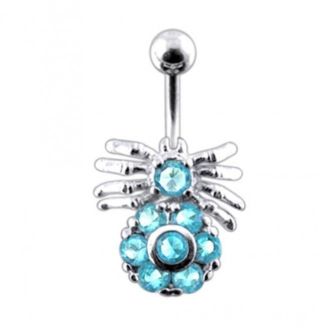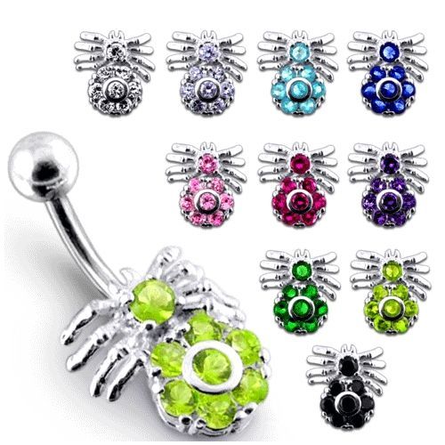 Piercingový šperk určený pro piercing pupíku. Piercing s ozdobou pavouka, který je zdobený zirkony.