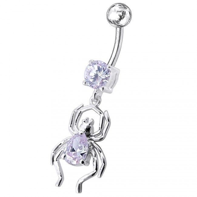 Stříbrný piercing do pupíku - pavouček (fialová)