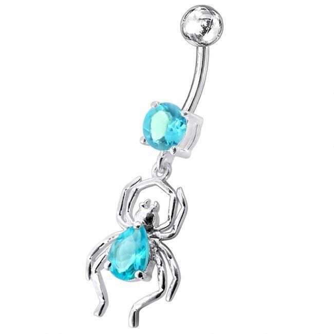 Stříbrný piercing do pupíku - pavouček (tyrkysová)