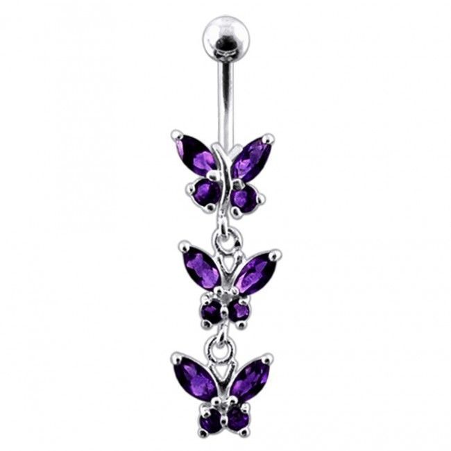 Stříbrný piercing do pupíku s motýlky (fialová)