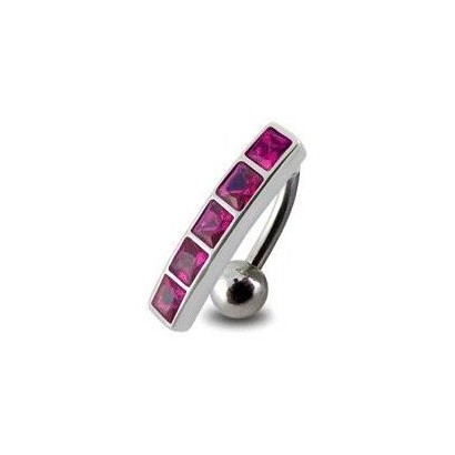 Piercingový šperk určený pro piercing pupíku. Piercing je zdobený hranatými zirkony.