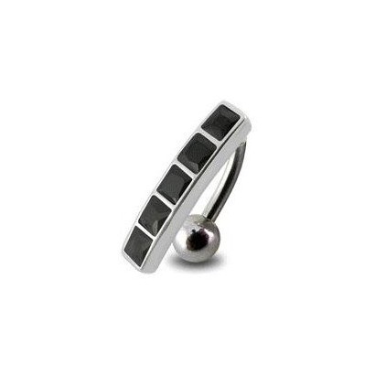 Piercingový šperk určený pro piercing pupíku. Piercing je zdobený hranatými zirkony.