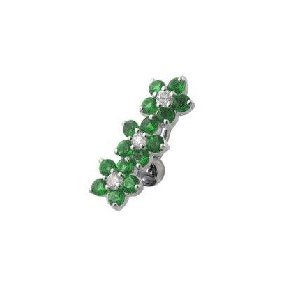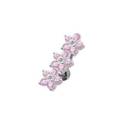 Piercingový šperk určený pro piercing pupíku. Piercing s kytičkami zdobenými zirkony.