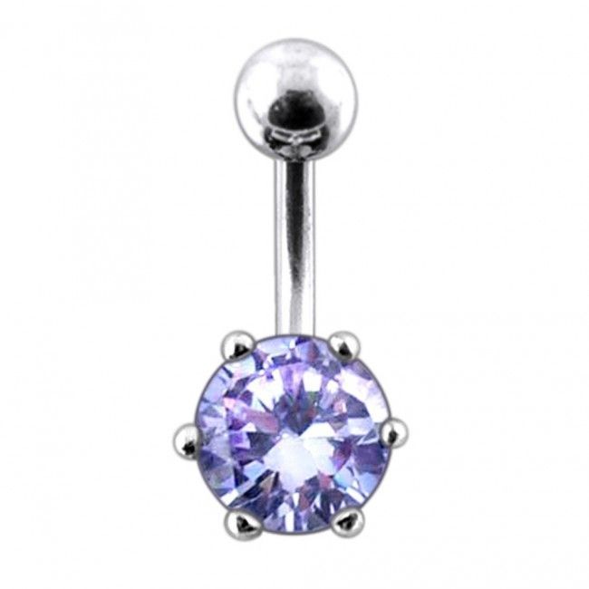Stříbrný piercing do pupíku se zirkonem (tmavě fialová)