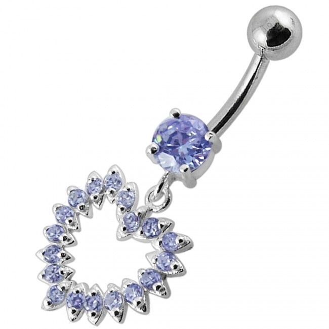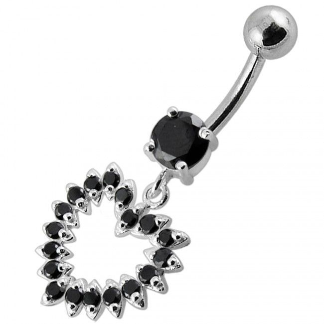 Piercingový šperk určený pro piercing pupíku. Piercing se srdcem zdobeným zirkony.