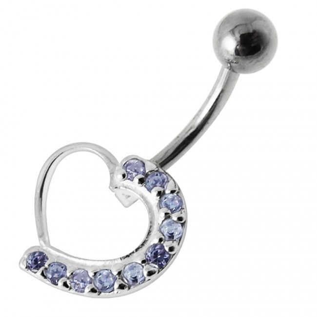 Stříbrný piercing do pupíku - srdce (tmavě fialová)