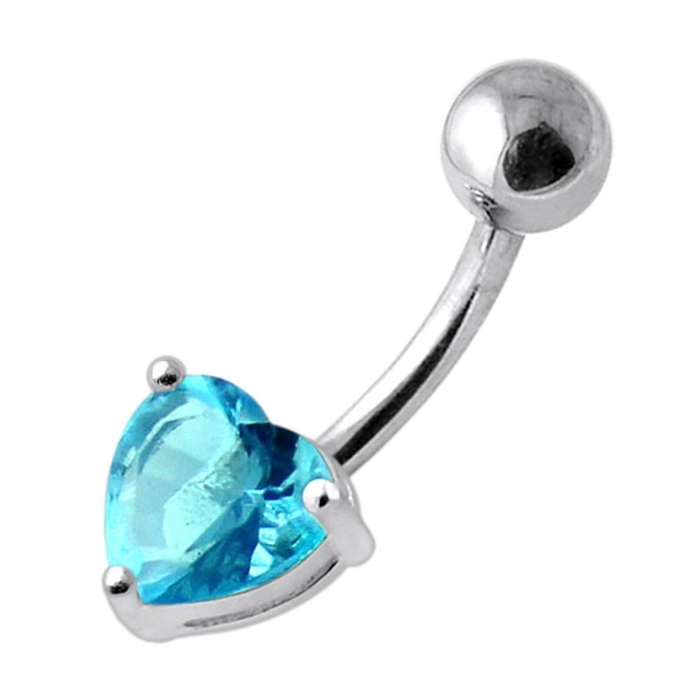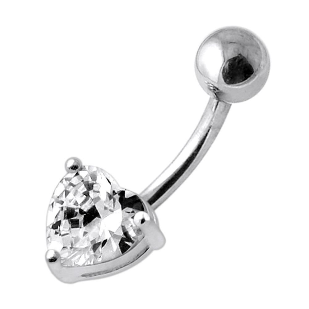 Piercingový šperk určený pro piercing pupíku. Piercing se zirkonem ve tvaru srdce ve stříbrné objímce.