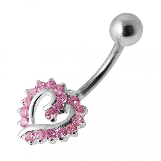 Piercingový šperk určený pro piercing pupíku. Piercing se srdíčkem zdobeným zirkony.