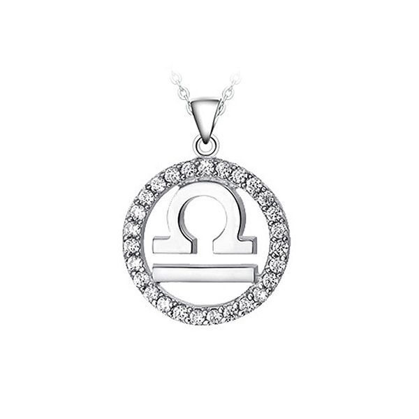 Stříbrný přívěsek ve tvaru znamení horoskopu. Přívěsek je osazený čirými zirkony.