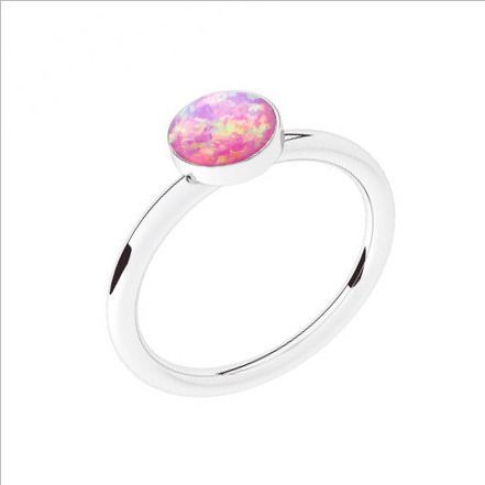 Stříbrný prsten se syntetickým opálem bílé barvy