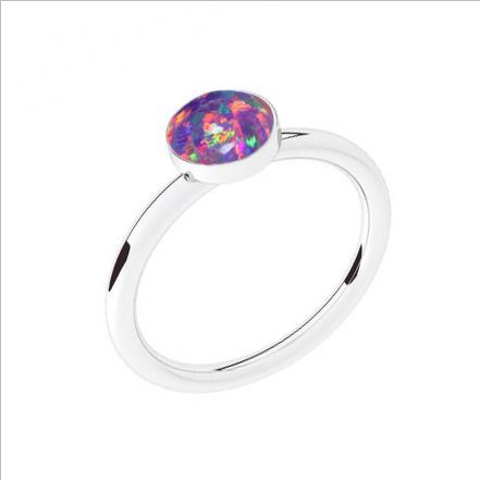 Stříbrný prsten se syntetickým opálem fialové barvy