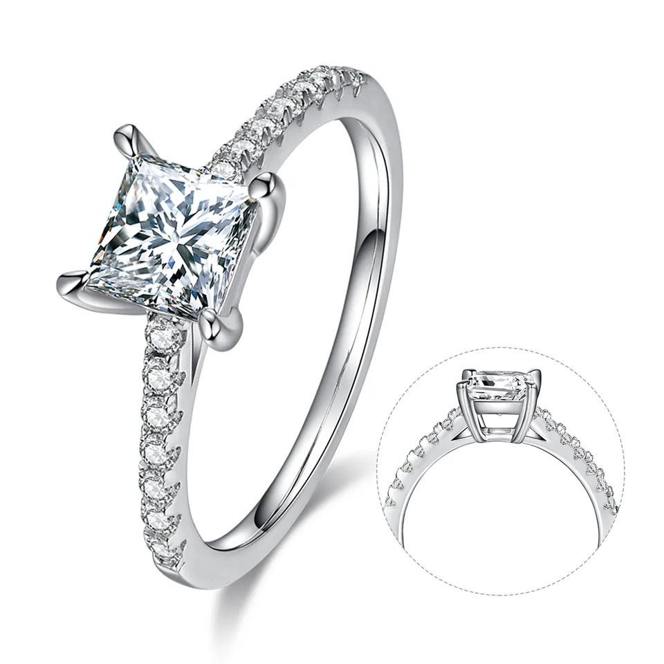 Luxusní stříbrný zásnubní prsten zdobený překrásným čtvercovým MOISSANITEM