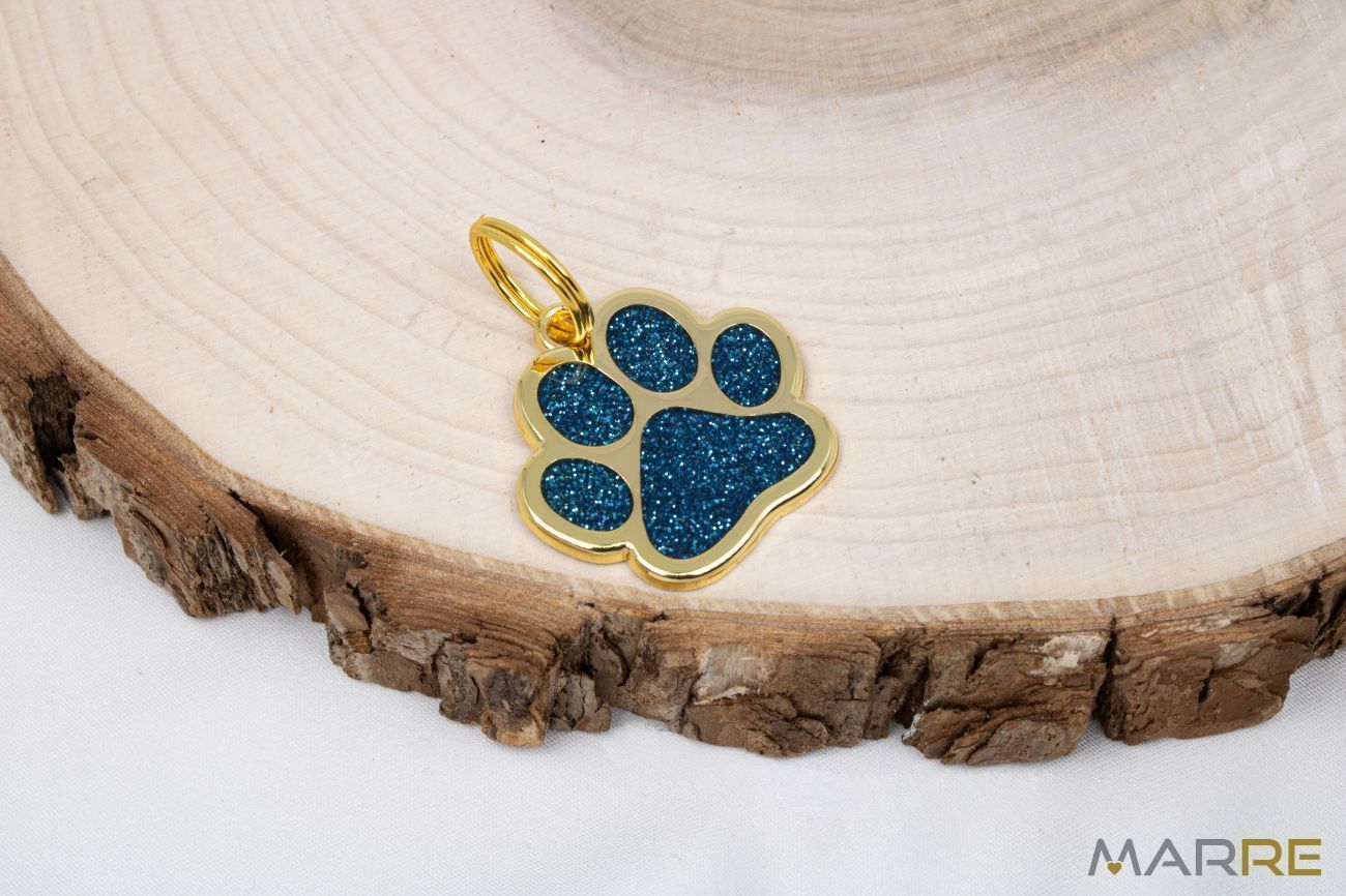 Třpytivá známka ve tvaru tlapky modrá