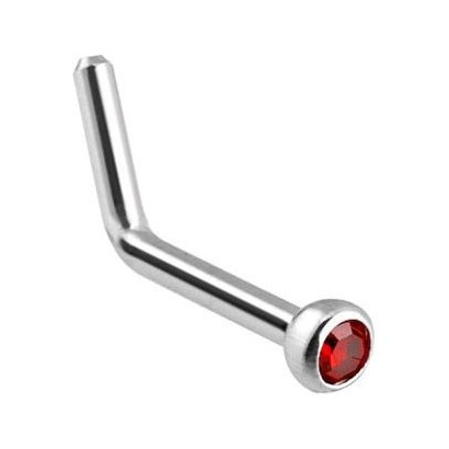 Zahnutý piercing do nosu z chirurgické oceli zdobený zirkonem.