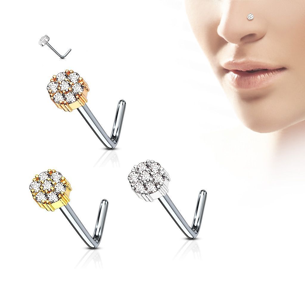 Piercing do nosu zdobený čirými kamínky