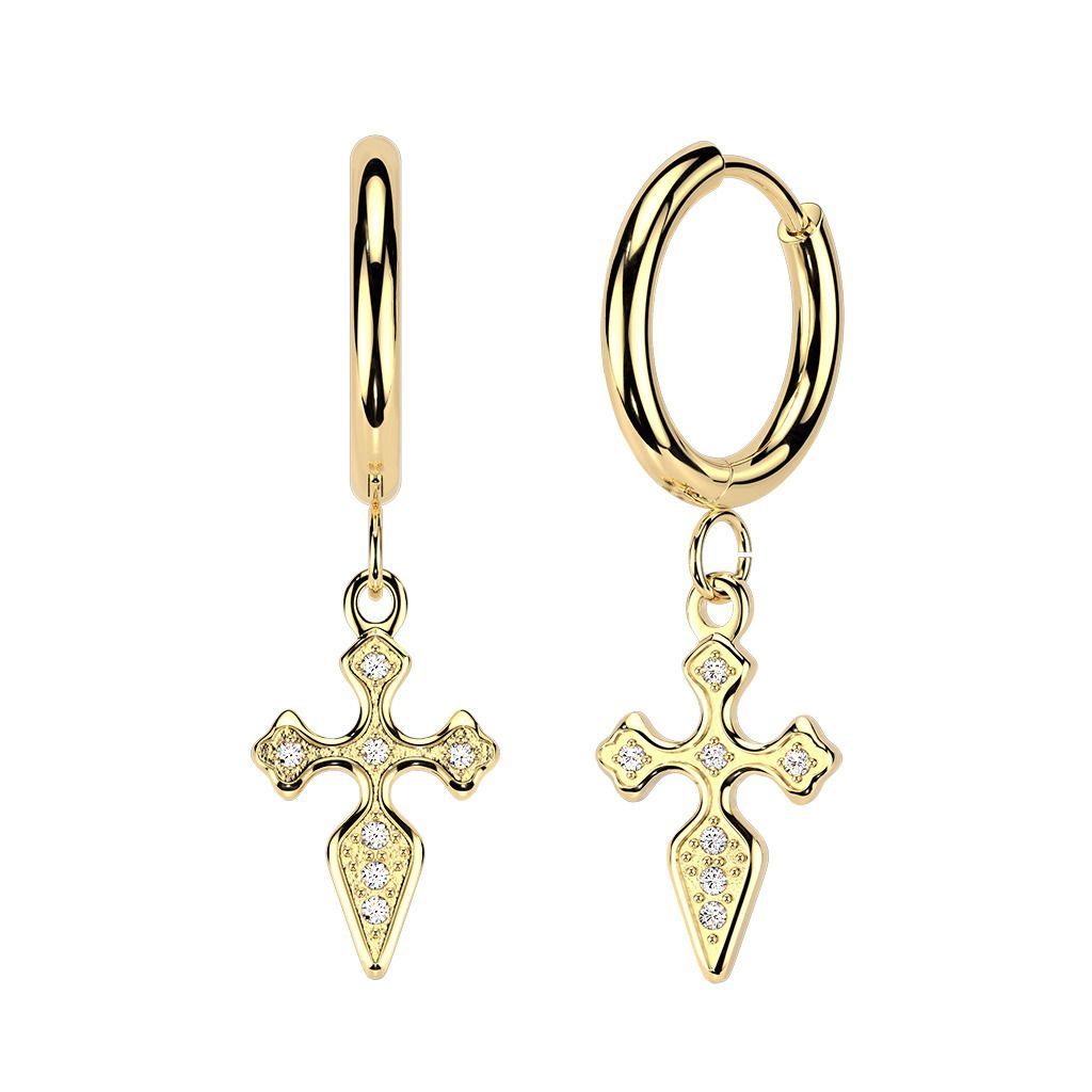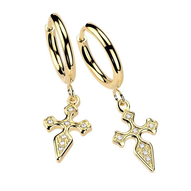 Šperky (14983) > Šperky z chirurgické oceli (4090) > Ocelové náušnice (1188) > Kruhové náušnice (380) > Zlacené kruhové ocelové náušnice s křížky