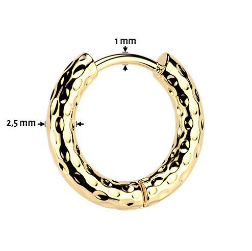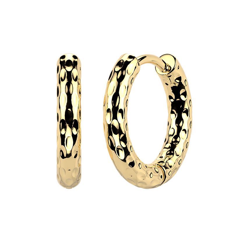 Zlacené ocelové náušnice kroužky s mačkaným dekorem.