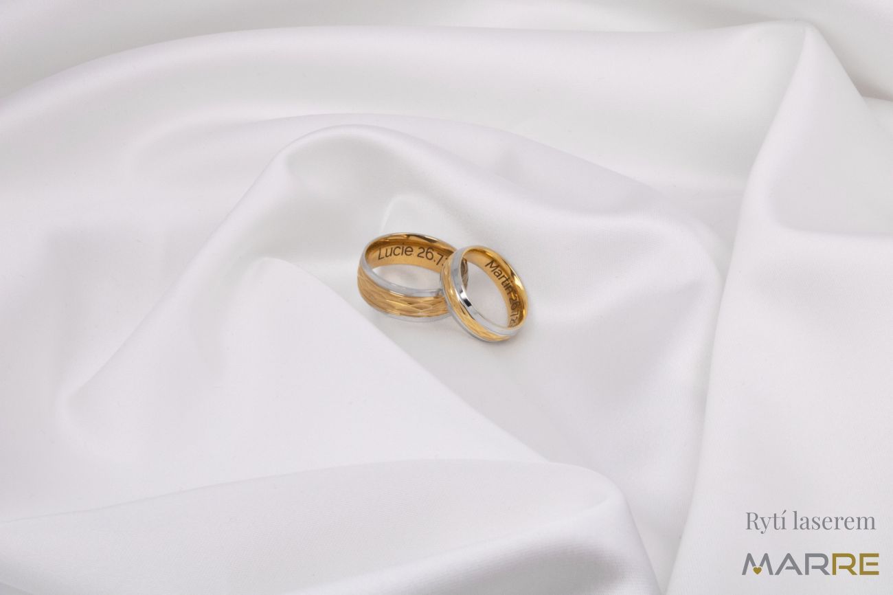 Ocelové snubní prsteny se zdobeným zlatým středem