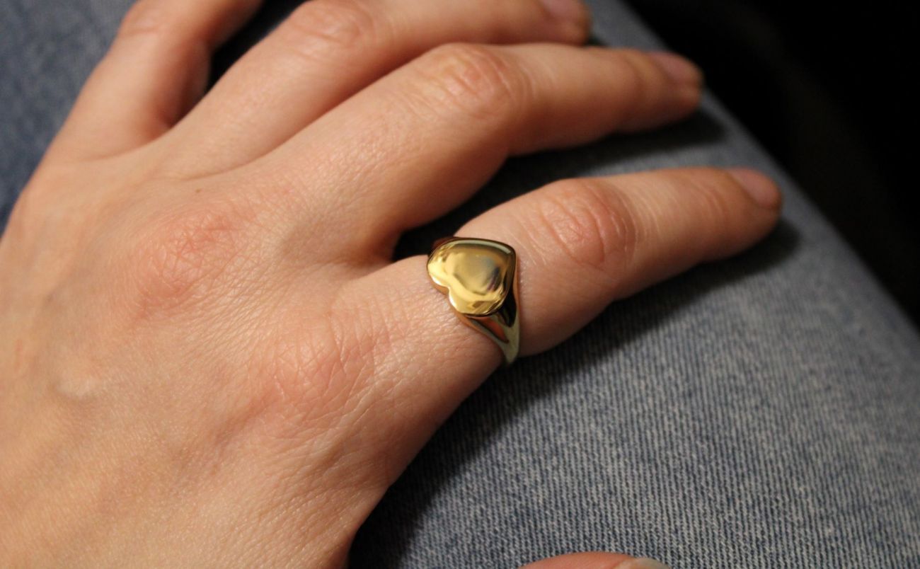 Ocelový prsten se zlacenou povrchovou úpravou. Srdce, srdíčko.