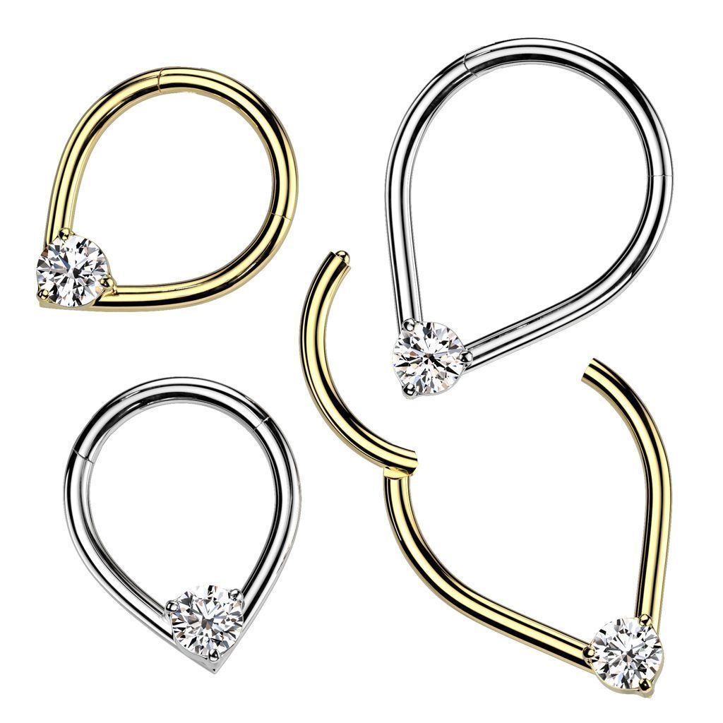 Piercing kruh segment čirým zirkonem. Piercing má praktický rozevírací pantík.