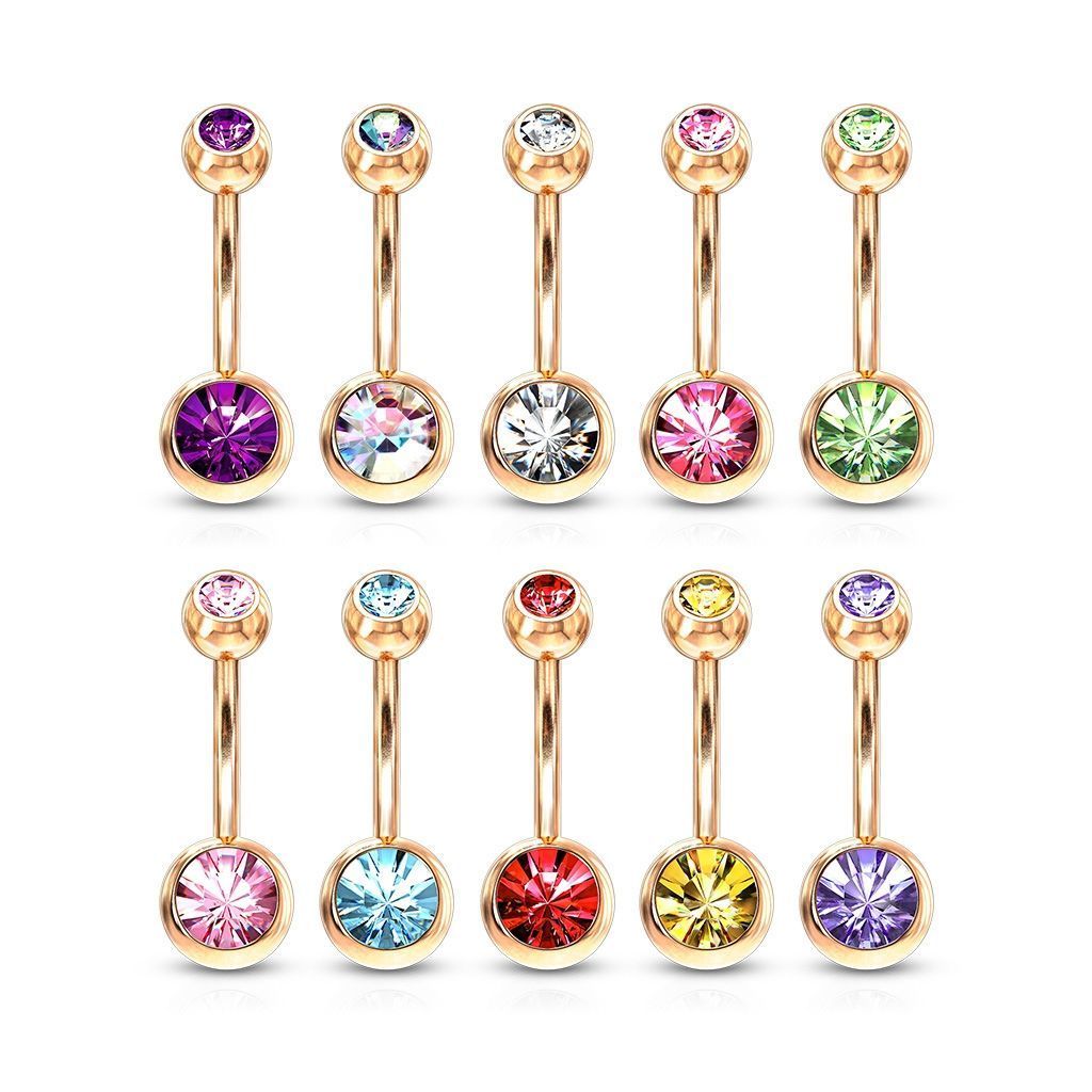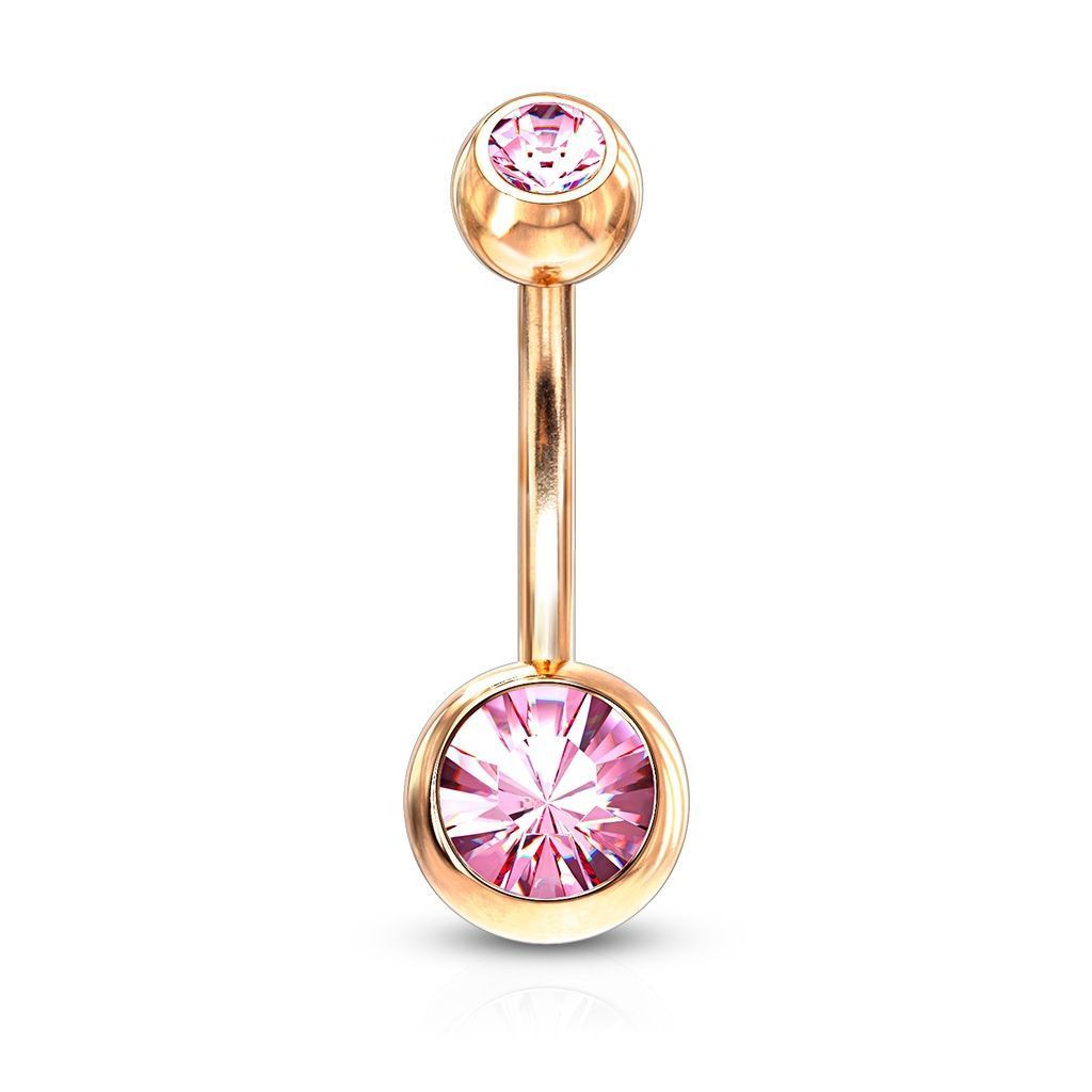Piercing banánek do pupíku. Povrchově zbarveno v barvě růžového zlata.