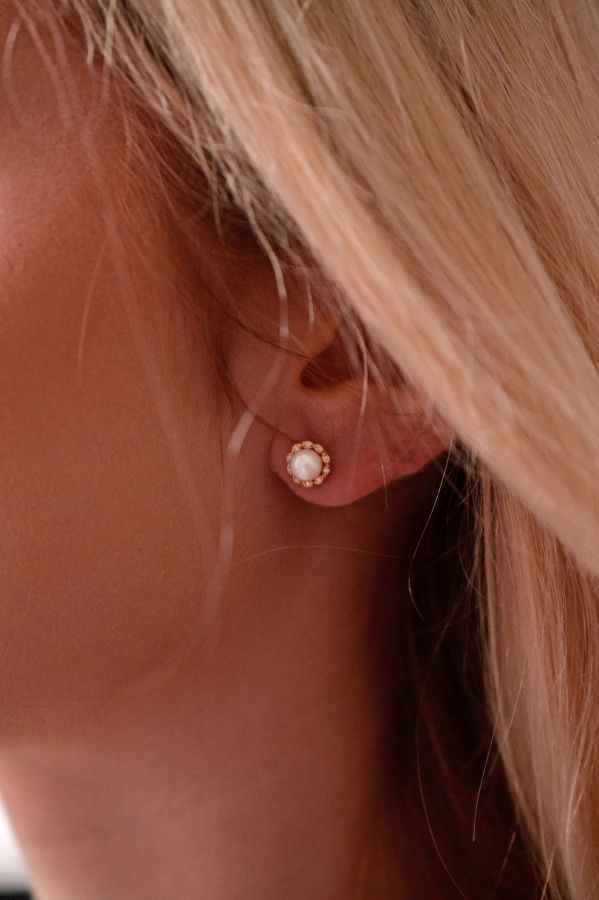 Na náušnice 91PB00041 bylo použito 14 karátové žluté zlato s ryzostí 585/1000 a pravé kultivované sladkovodní říční perly. Perly o průměru 5 mm se mohou pochlubit nejvyšší kvalitou AAA a tvoří střed ktětinky. Okvětní lístečky jsou z malých
