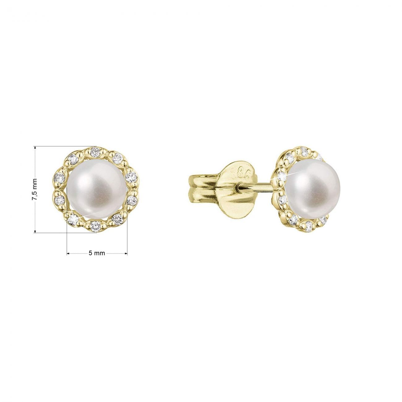 Zlaté 14 karátové náušnice kytička s říční perlou a brilianty 91PB00041