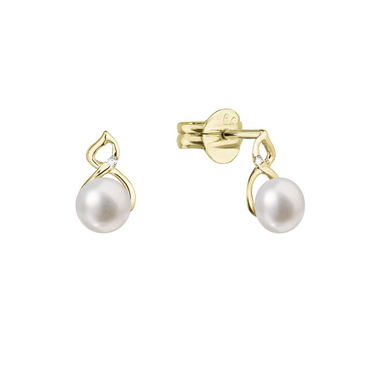 Zlaté 14 karátové náušnice s říční perlou a brilianty 91PB00042
