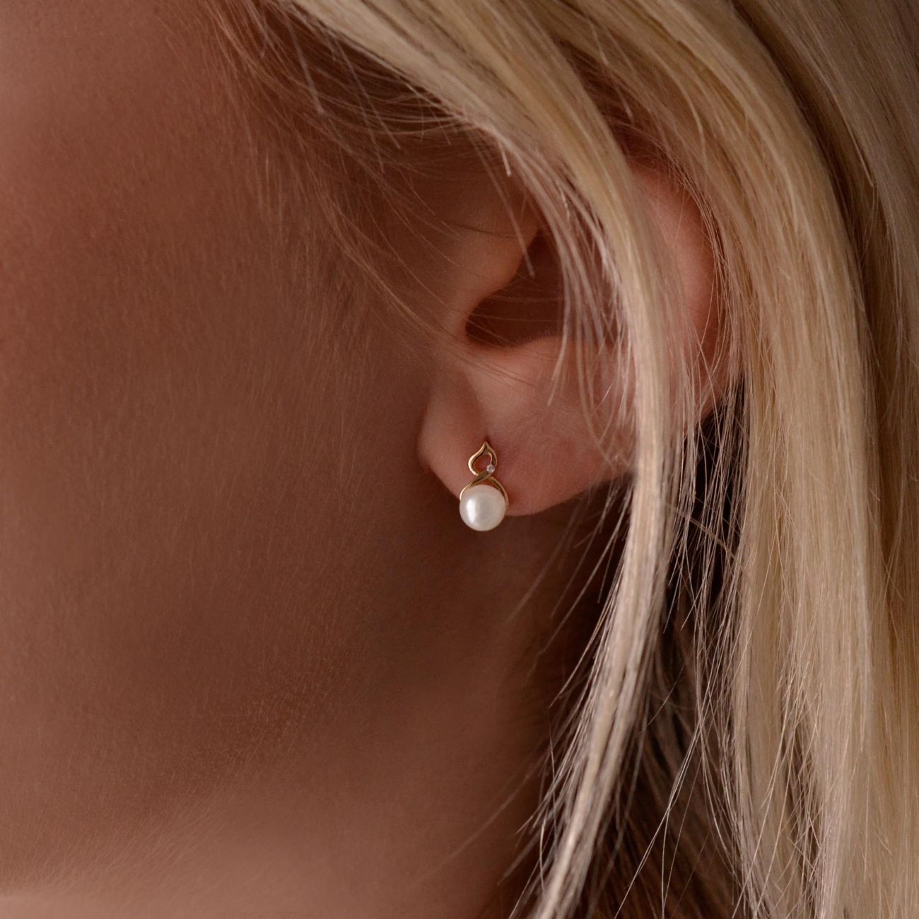Na náušnice 91PB00042 bylo použito 14 karátové žluté zlato s ryzostí 585/1000 a pravé kultivované sladkovodní říční perly. Perly o velikosti 5 mm se mohou pochlubit nejvyšší kvalitou AAA. Náušnice zdobí malý briliant vsazený do zlata, celkem dva brilianty mají 0,010 ct..