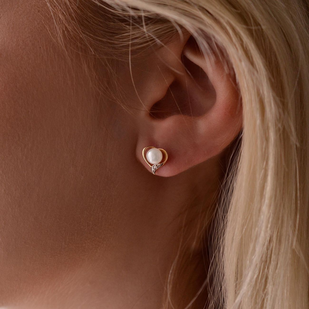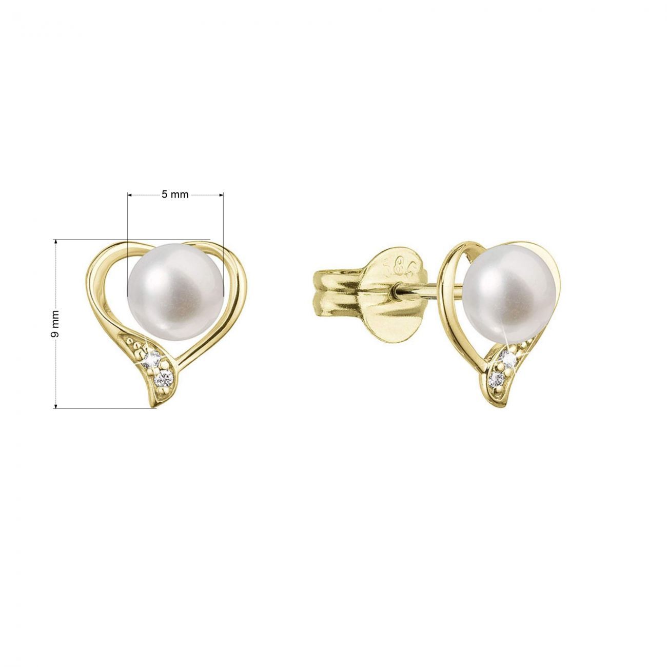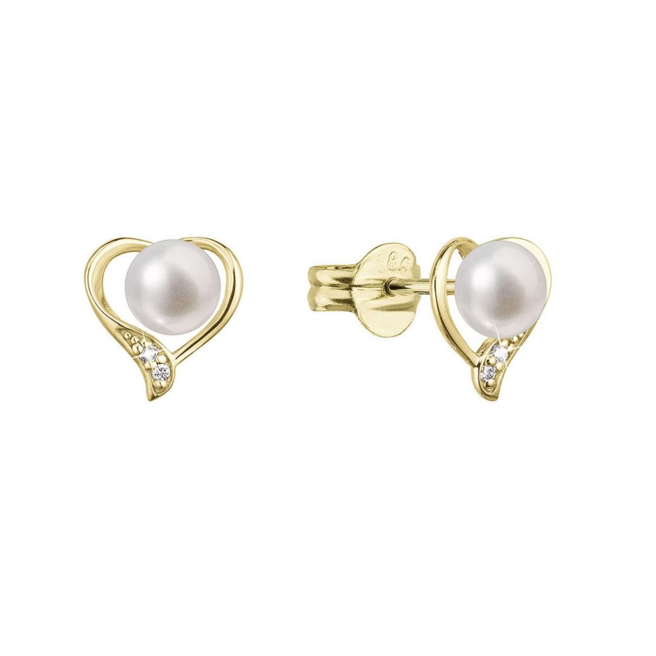 Zlaté 14 karátové náušnice srdce s říční perlou a brilianty 91PB00054