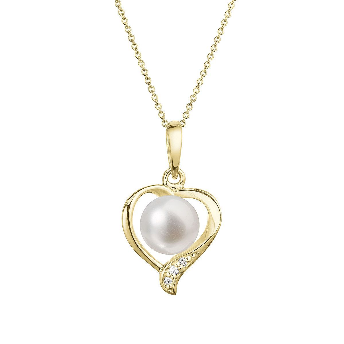 Zlatý 14 karátový náhrdelník srdce s bílou říční perlou a brilianty 92PB00049