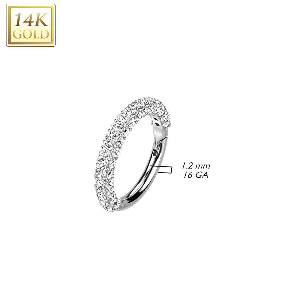 Luxusní ozdobný zlatý piercing - segment kruh s praktickým otevíracím pantíkem pro pohodlné otevírání a zavírání. Piercing vhodný pro septum nebo pro piercing ucha.